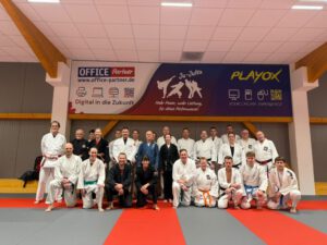 Der Einladung von Lothar Hartmann (TV Bedburg) – einem langjährigen Weggefährten von Jens seit der gemeinsamen Übungsleiter-Ausbildung 1996 – folgten über 40 Ju-Jutsuka. Die Matte war voll, die Erwartungen hoch.